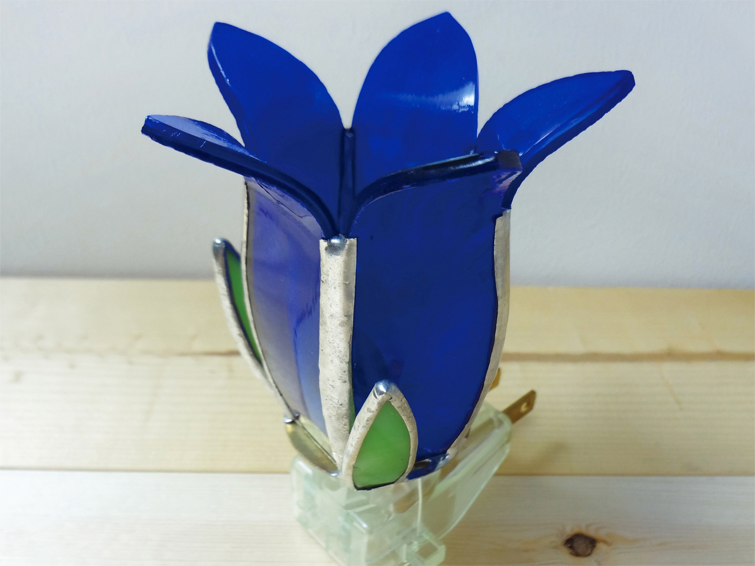 京都北野天満宮 上七軒でステンドグラス体験 リンドウの花 ガラスランプ制作 アトリエ はうる じゃらん遊び体験
